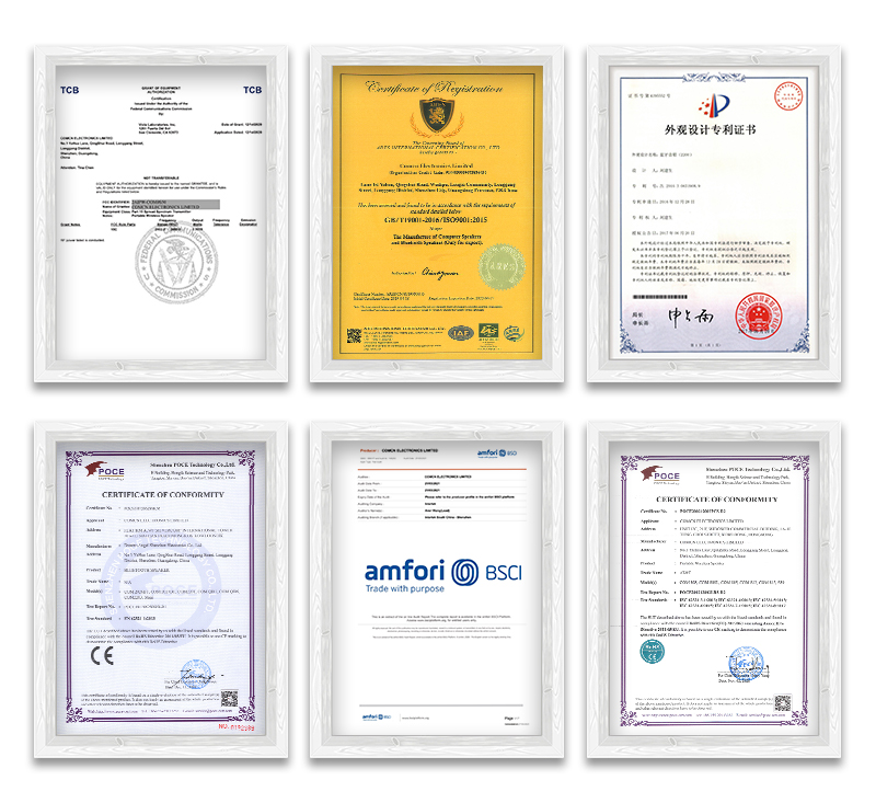 公司产品远销北美,亚洲,欧洲,南美等地。通过ISO9001,BSCI认证,且通过德国大品牌企业审厂。完善的质量体系,严格的质量政策,保证产品的无缺陷。CE和FCC,ROHS Reach适用于我们所有的产品。产品开发有专业听音师、软件工程师、电子工程师、结构和外观工程师多名。